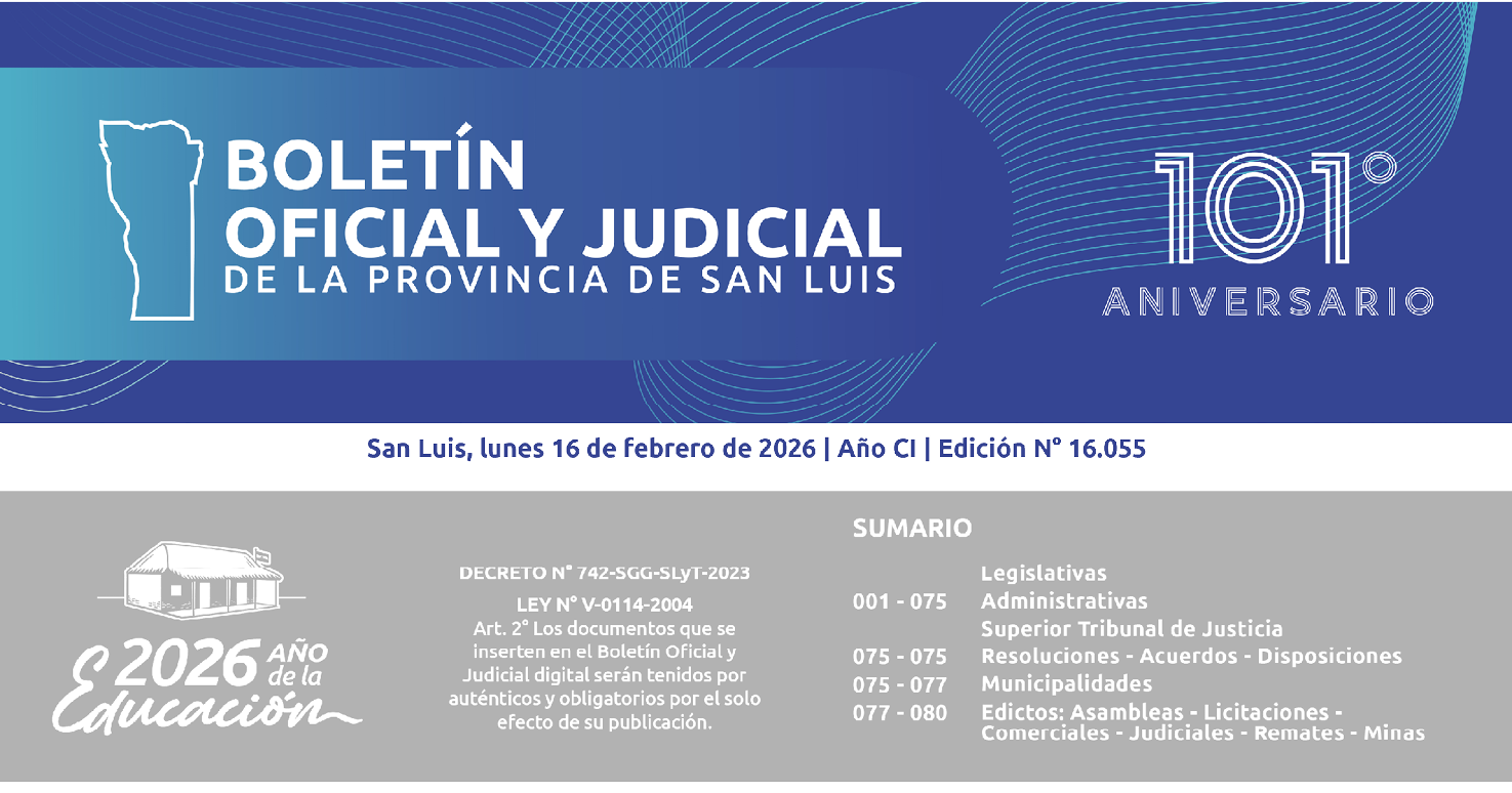 “2026 - AÑO DE LA EDUCACIÓN EN SAN LUIS - BICENTENARIO DE LA