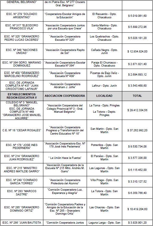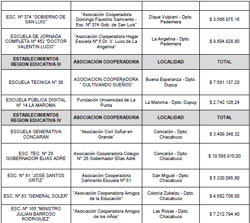 Art. 2°.- Otorgar subsidios con cargo a rendir cuenta documentada de su inversión ante Contaduría General de la Provincia, a favor de las Asociaciones Civiles / Cooperadoras de los establecimientos educativos públicos provinciales detallados en el Anexo del presente Decreto, por los montos que se indican en cada caso, destinado a financiar el transporte escolar rural e inclusivo durante el período comprendido entre el 3 de noviembre de 2025 y hasta el 15 de diciembre de 2025.-