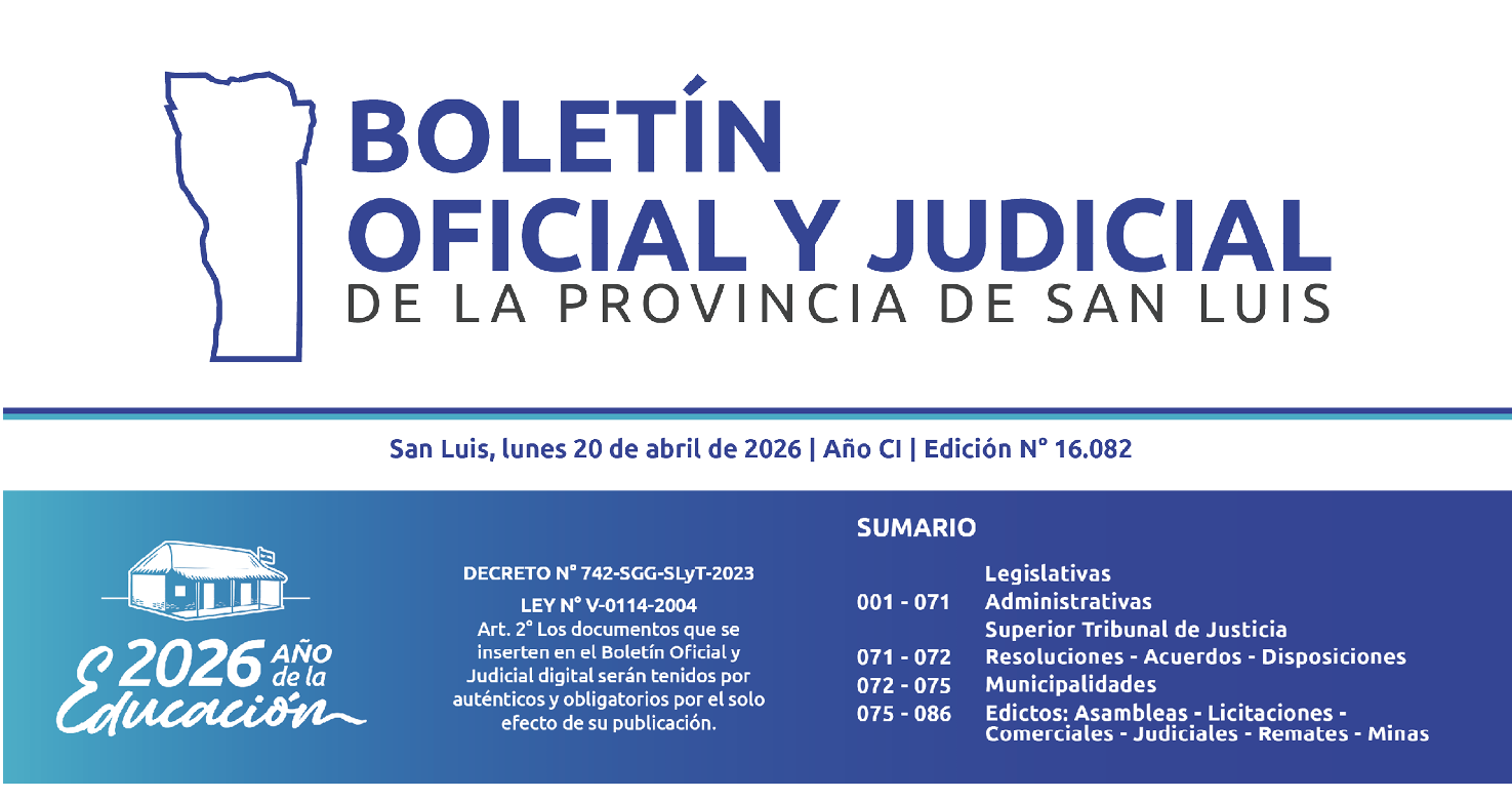 “2026 - AÑO DE LA EDUCACIÓN EN SAN LUIS - BICENTENARIO DE LA FUNDACIÓN DE LA PRIMERA ESCUELA DE DOMINGO FAUSTINO SARMIENTO”